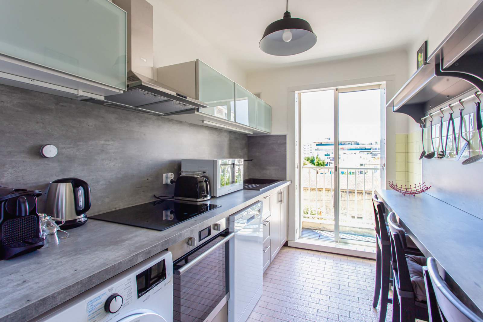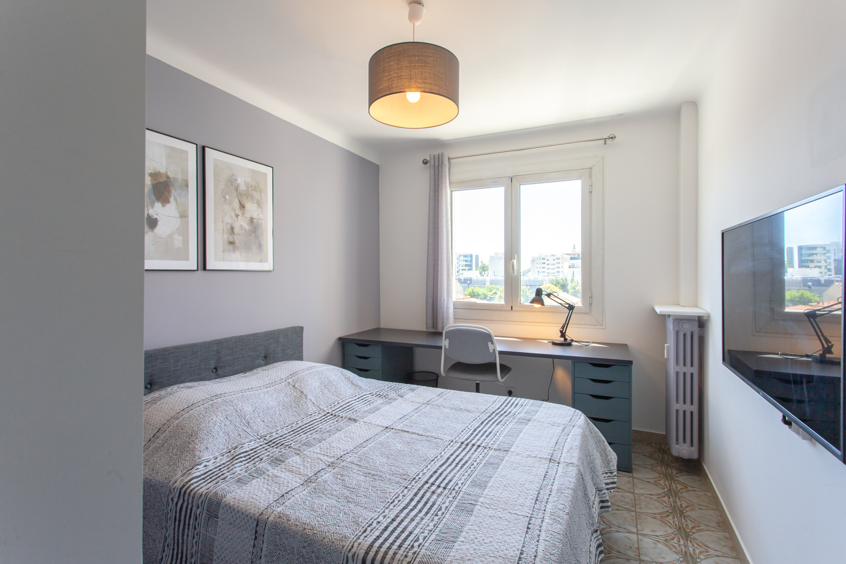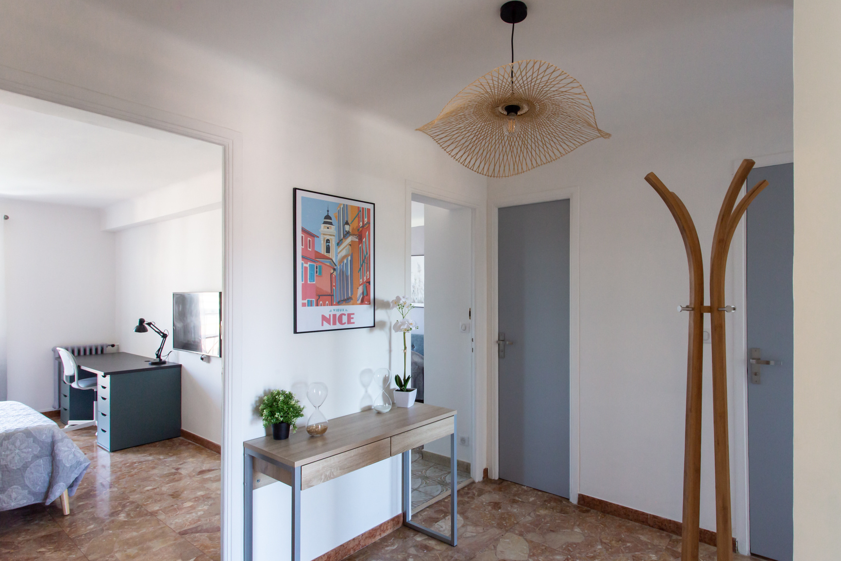 Colocation étudiante / Nice Ouest proche Edhec, Tram et commodités, dans appartement totalement rénové et meublé avec goût en étage élevé avec ascenseur. Le bien se compose d'un hall d'entrée, 3 chambres privées louées séparément, une cuisine avec balcon entièrement équipée réfrigérateur, congélateur, lave linge séchant, four, micro ondes, plaque vitrocéramique , hotte aspirante, lave vaisselle, machine à café, ensemble vaisselle; donnant sur balcon, une salle d'eau avec douche à l'italienne, meuble vasque, un wc séparée, un placard technique avec box fibre et extincteur.