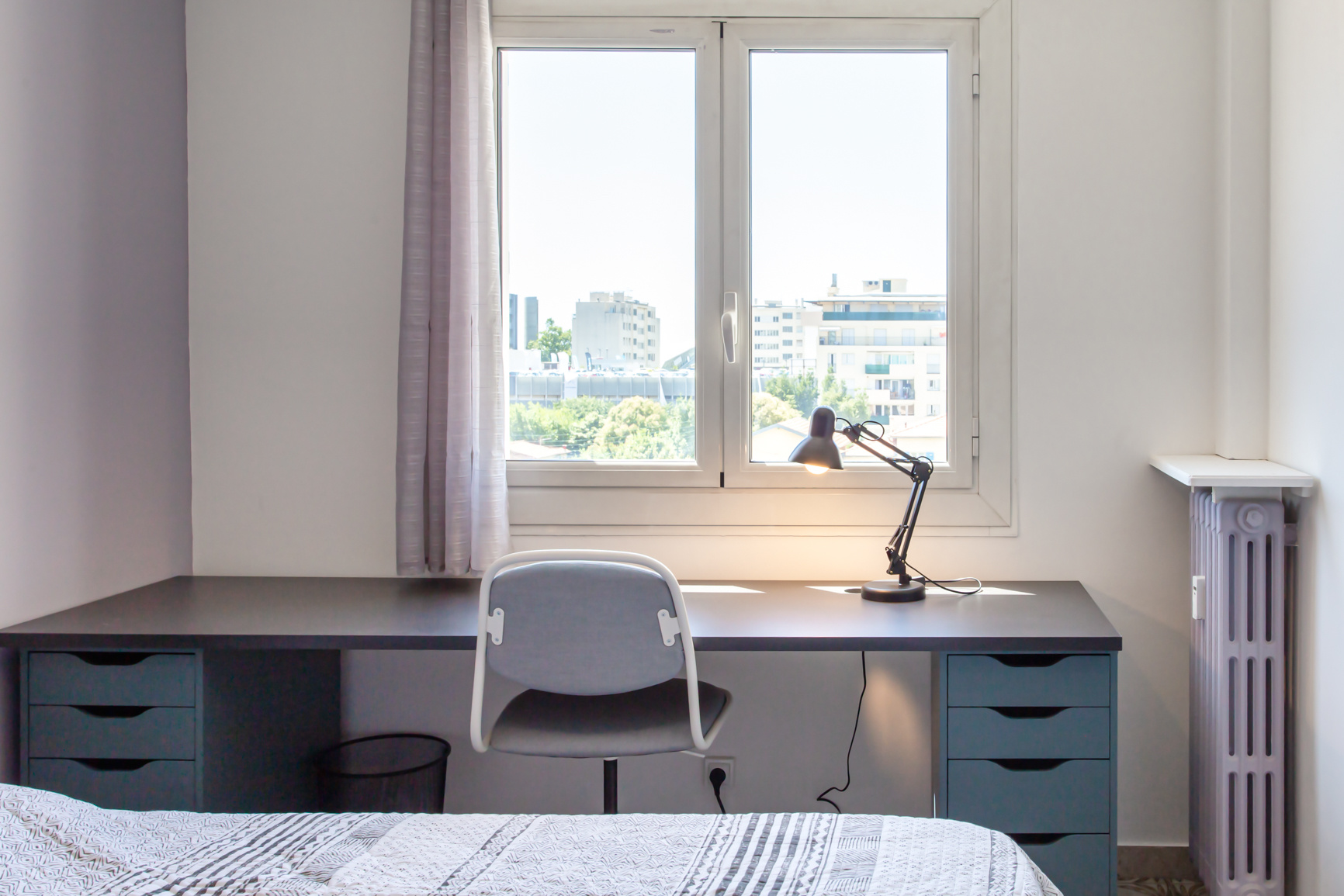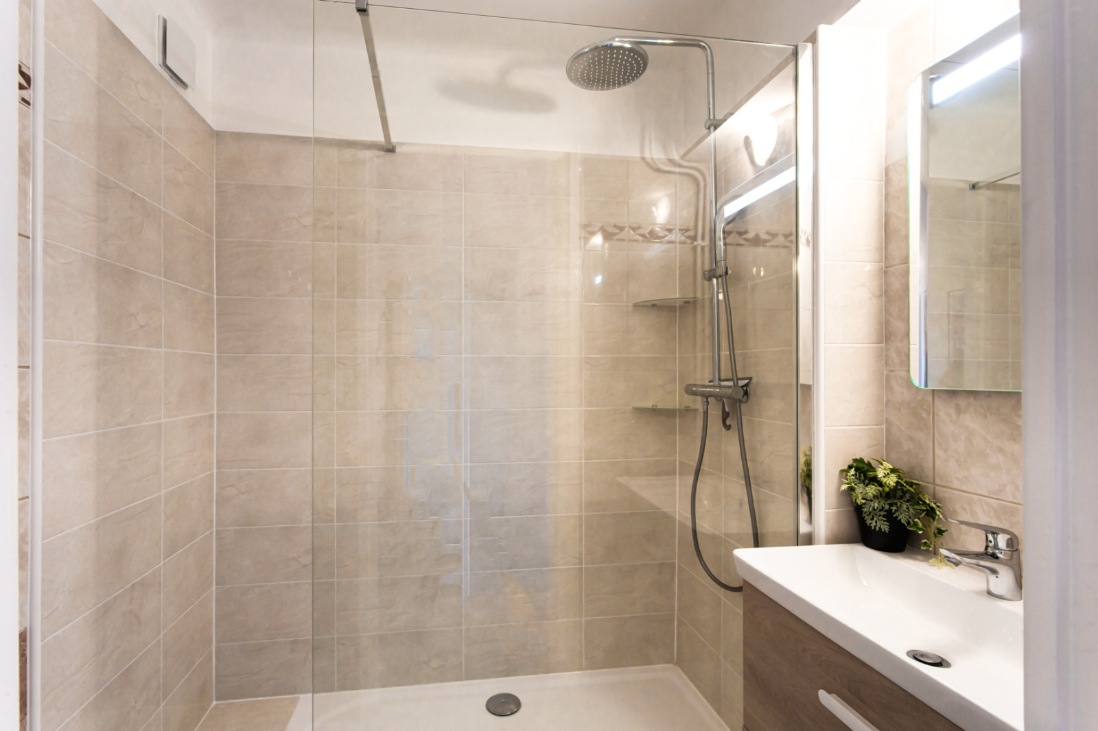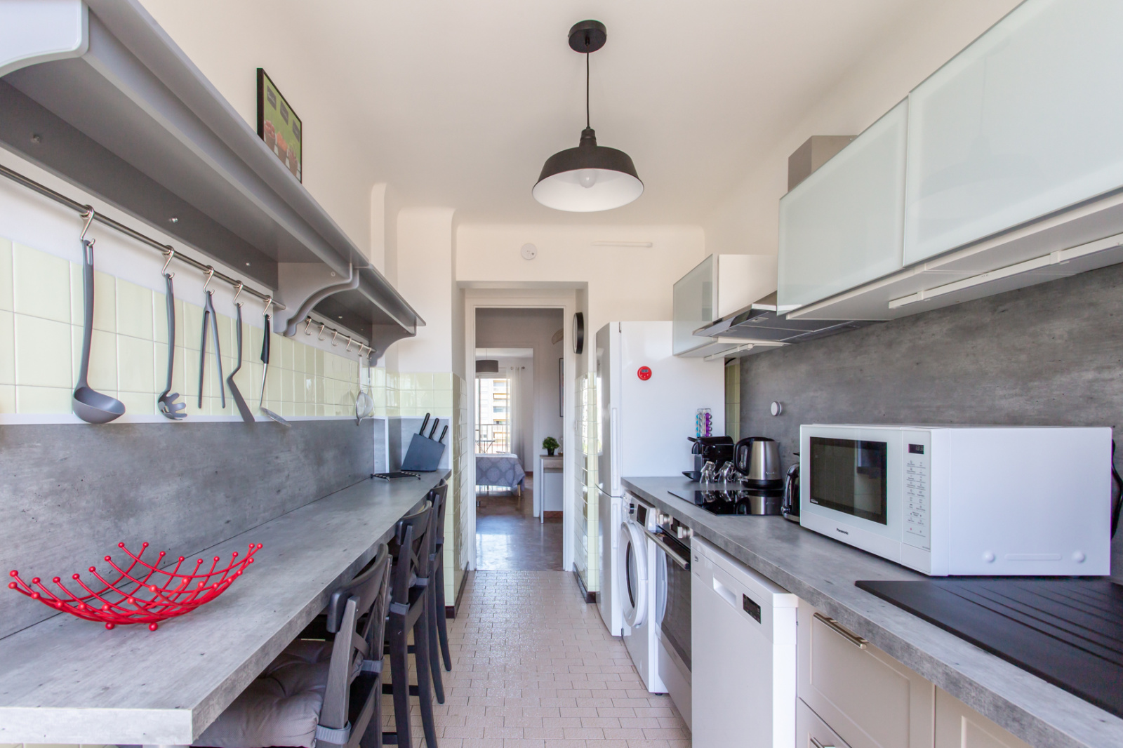 Colocation étudiante / Nice Ouest proche Edhec, Tram et commodités, dans appartement totalement rénové et meublé avec goût en étage élevé avec ascenseur. Le bien se compose d'un hall d'entrée, 3 chambres privées louées séparément, une cuisine avec balcon entièrement équipée réfrigérateur, congélateur, lave linge séchant, four, micro ondes, plaque vitrocéramique , hotte aspirante, lave vaisselle, machine à café, ensemble vaisselle; donnant sur balcon, une salle d'eau avec douche à l'italienne, meuble vasque, un wc séparée, un placard technique avec box fibre et extincteur.