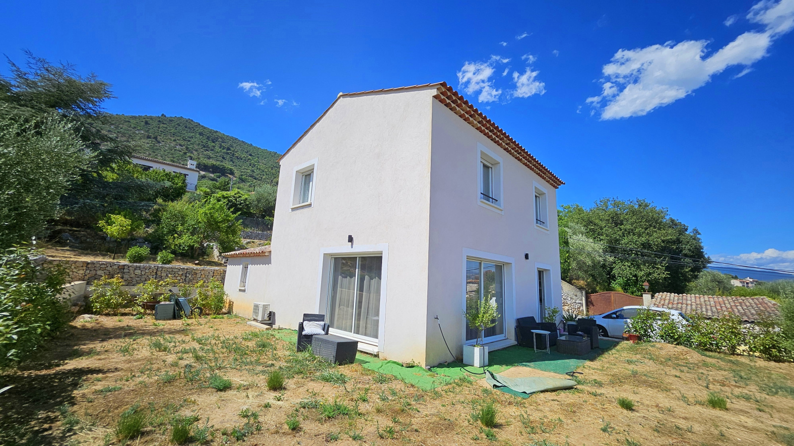 GATTIERES - Située dans un environnement paisible et recherché, cette charmante villa récente, édifiée en 2019 sur un terrain de 511 m², allie confort moderne et cadre de vie agréable.